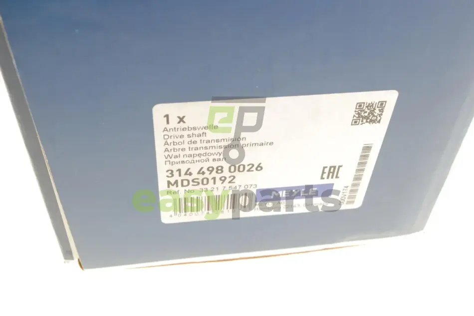 Піввісь (задня) (L) BMW 3 (E90) 04-11 M47/N47/N52 (27x25zx607x48T) (+ABS) MEYLE (Мейли) 314 498 0026