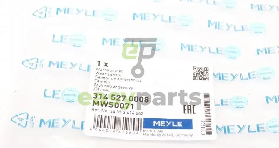 Датчик зносу гальмівних колодок (передніх) BMW X3 (E83) 3.0sd 06-08 (L=745mm) MEYLE (Мейли) 3145270008