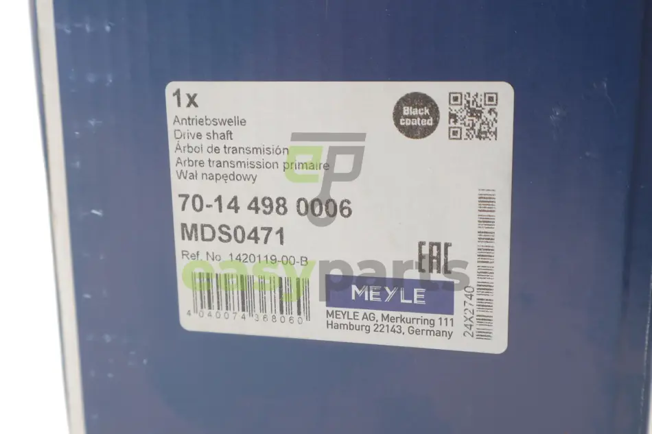 Піввісь (передня) Tesla Model S 14-/Model X 15- (R) (30x25/908) MEYLE (Мейли) 70-14 498 0006