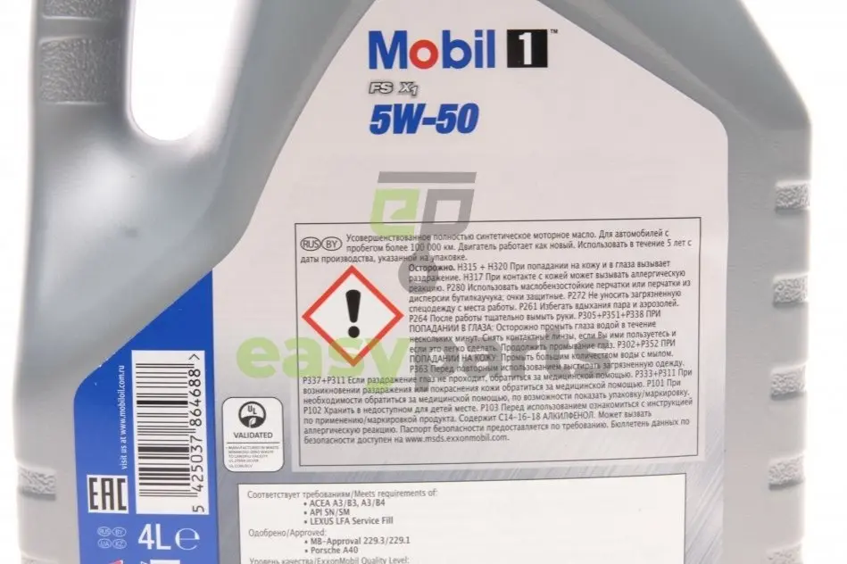 Олива двигуна 4L FS 5W50 (ACEA A3/B3 A3/B4 MB 229.3 229.1 Porsche A40, VW 501.01/505.00) MOBIL 153638