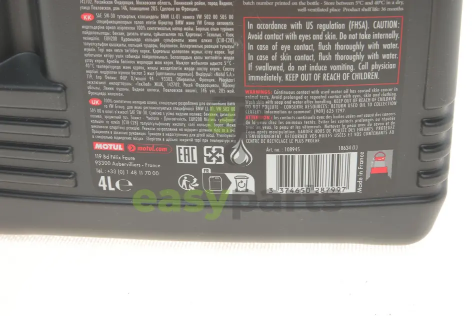 Масло моторное 100% синтетическое д/авто MOTUL 368107 / 108945