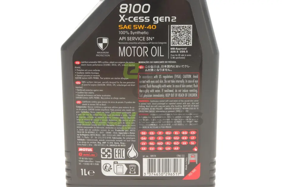 Олива 5W40 X-cess 8100 gen2 (1L) (VW 502 00/505 00/MB 229.5/LL-01/RN0710-0700/B71 2296) (109774) MOTUL 368201 gen2