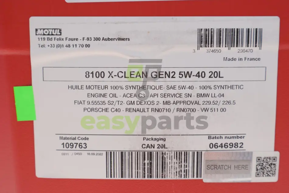 Разрешение производителя: BMW LL-01, MB-229.5, PORSCHE A40, PSA B71 2296, RENAULT RN0700, RENAULT RN0710, VW 502, VW 505