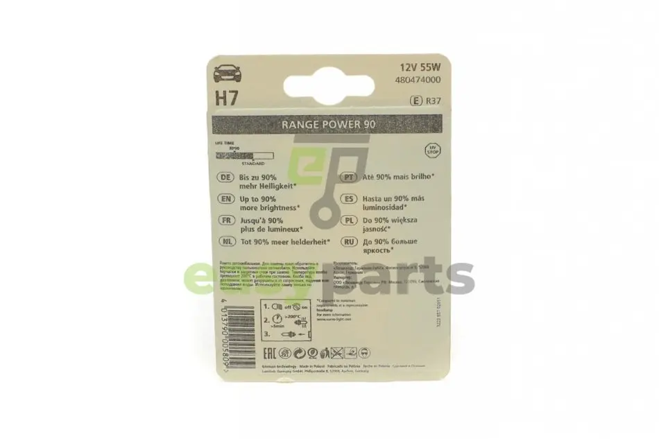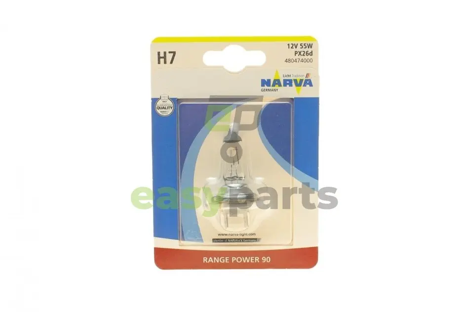 Автолампа H7 12V 55W PX26d Range Power 90 (блістер/1шт) NARVA (Нарва) 480474000