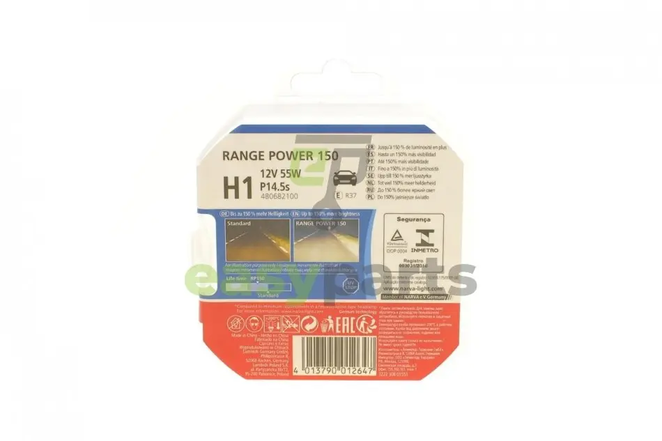 Автолампа H1 12V 55W P14.5s Range Power 150 (к-кт 2 шт) NARVA (Нарва) 480682100