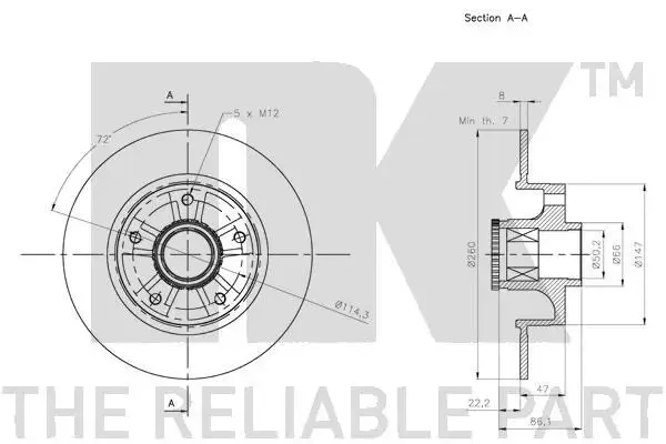 (Coated) Диск гальмівний задній (з підшипником) 260x86,2 Renault Fluence, Megane III, CC, 08- NK 313973