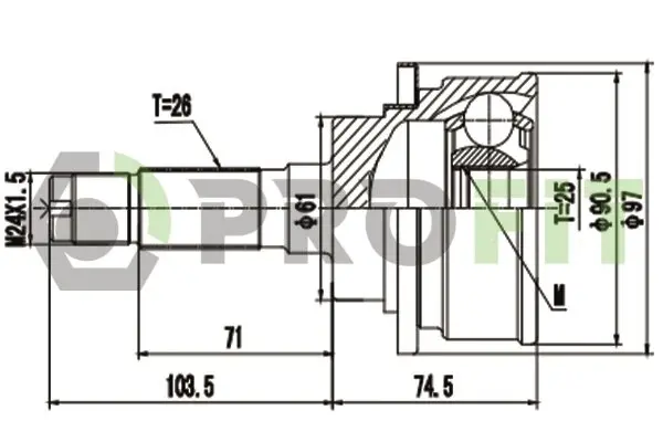 Зубчатое соединение со стороны коробки: 25