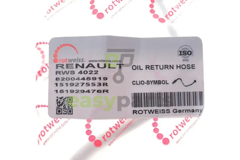 Трубка подачі масла до турбіни Renault Kangoo/Megane II/Dokker 1.5 dCi 01- (всередині OE) ROTWEISS RWS4022