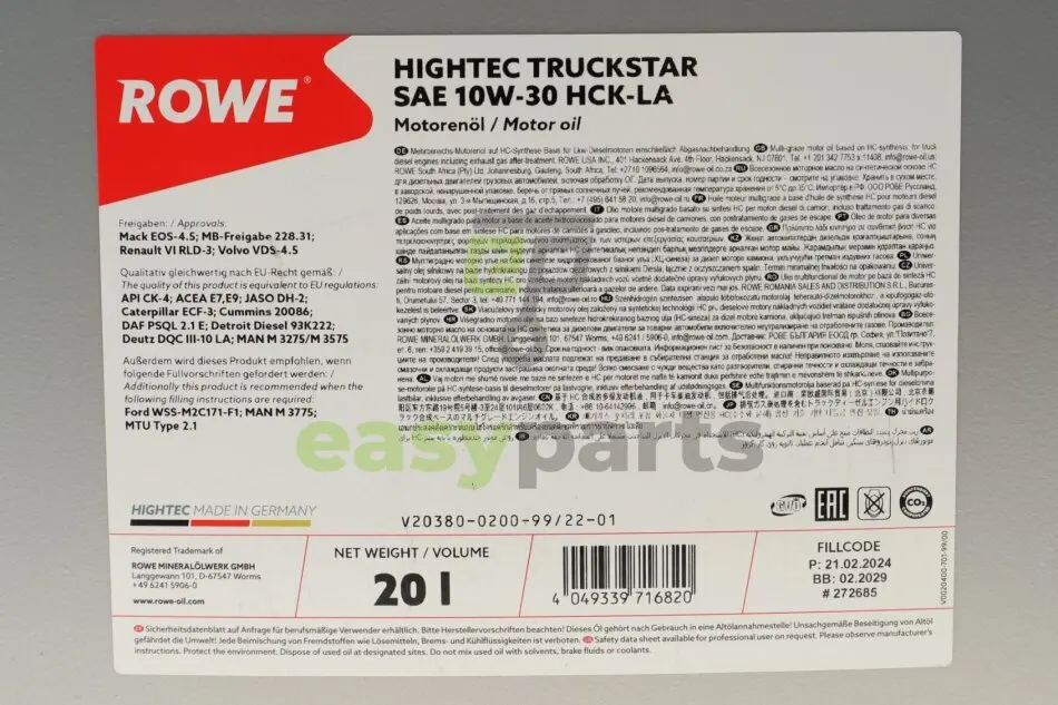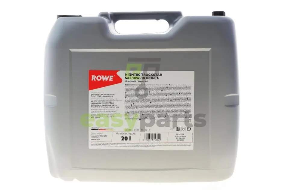 Олива 10W30 HIGHTEC TRUCKSTAR HCK-LA (20L) (MB 228.31/MAN 3775/DEUTZ DQC III-LA/WSS-M2C171-F1) ROWE 20380-0200-99