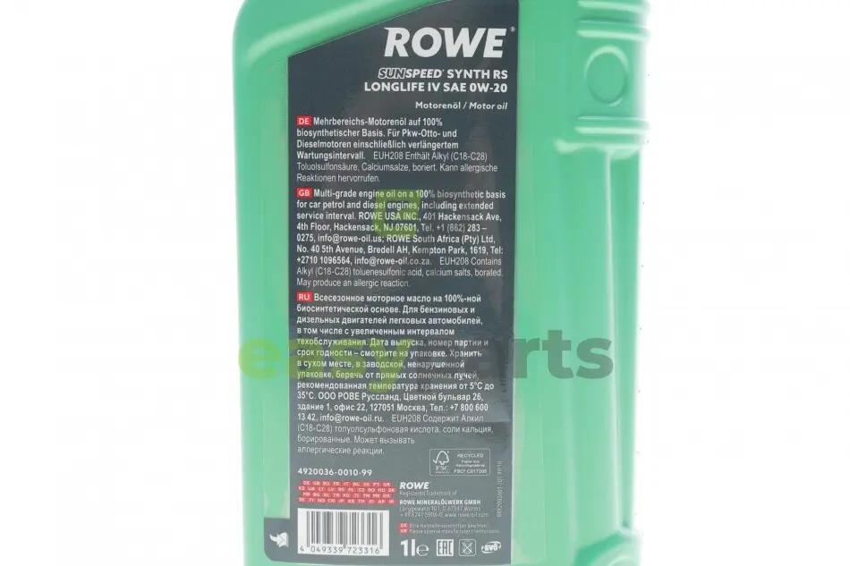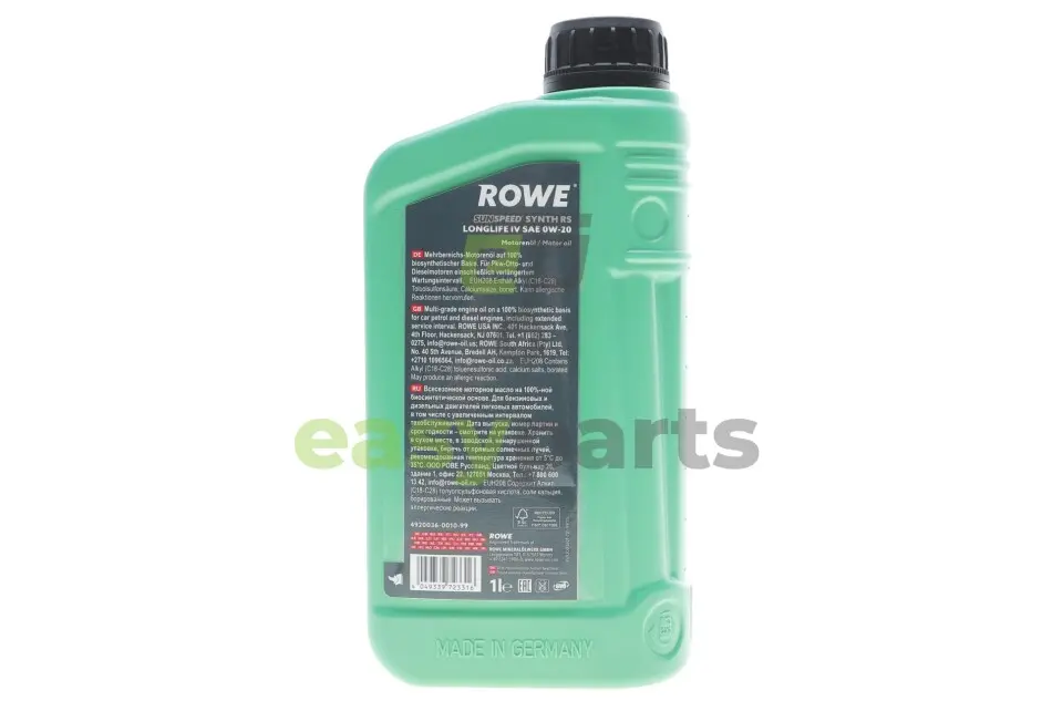 Олива 0W20 SUNSPEED SYNTH RS LONGLIFE IV (1L) (Porsche C20/VW 508 00/509 00) (ACEA A1/B1/C5) ROWE 4920036-0010-99