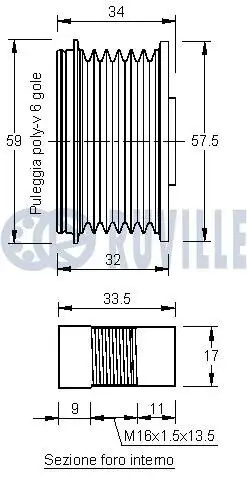 CITROEN Шкив генератора Berlingo, Jumpy, C5 2,0-2,2 HDi 01-, PEUGEOT 306/307/406. RUVILLE 541547