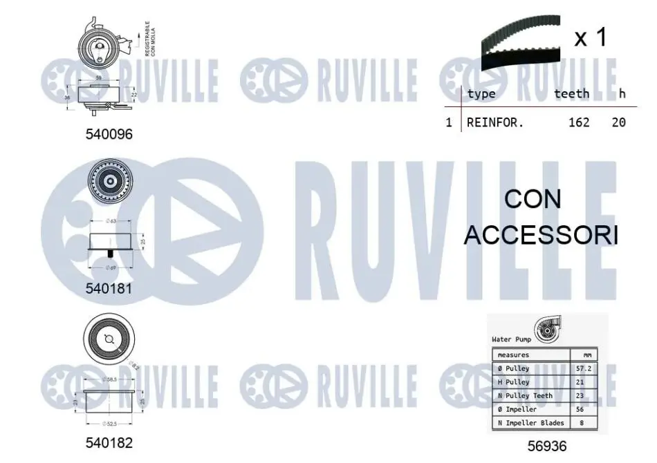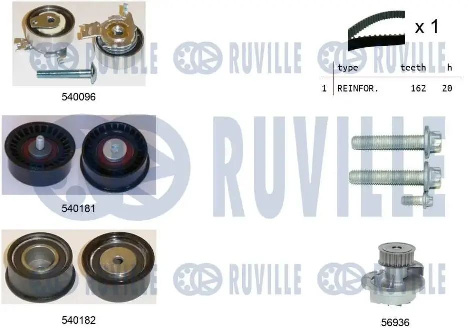 OPEL К-т. ГРМ (помпа + ремень+3шт.ролика+крепление) Astra G 1.4/1.6/1.8 RUVILLE 5500401