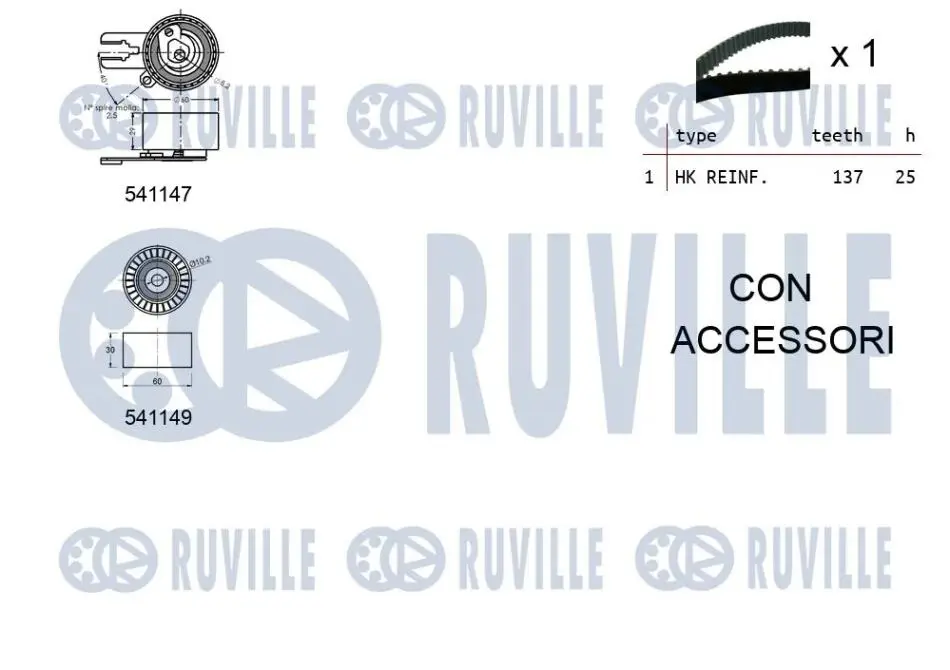 К-кт. ГРМ (ремінь+2 ролика) Citroen Berlingo 1.6 HDI 05- RUVILLE 550058