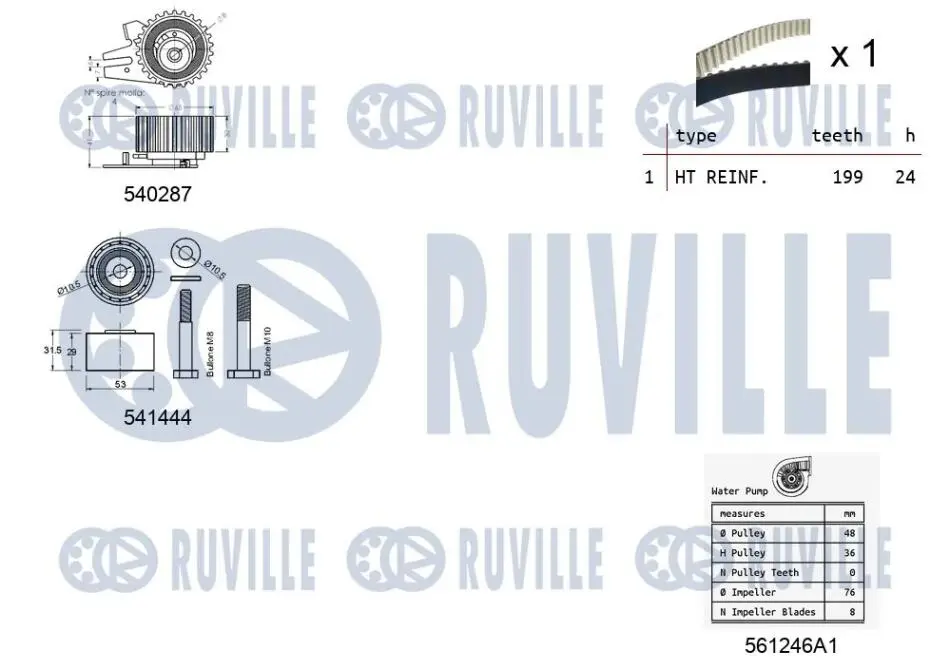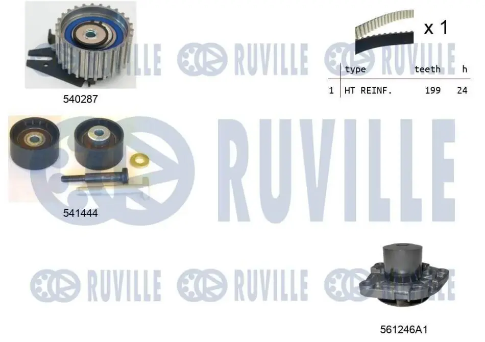 OPEL К-кт. ГРМ (помпа+рем.+2шт. ролик) Vectra c 1.9 CDTI RUVILLE 5502601