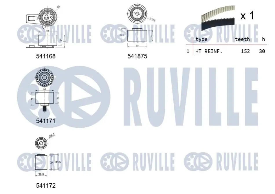 К-кт ГРМ Kia Carnival 2.9 CRDI 06- RUVILLE 550327