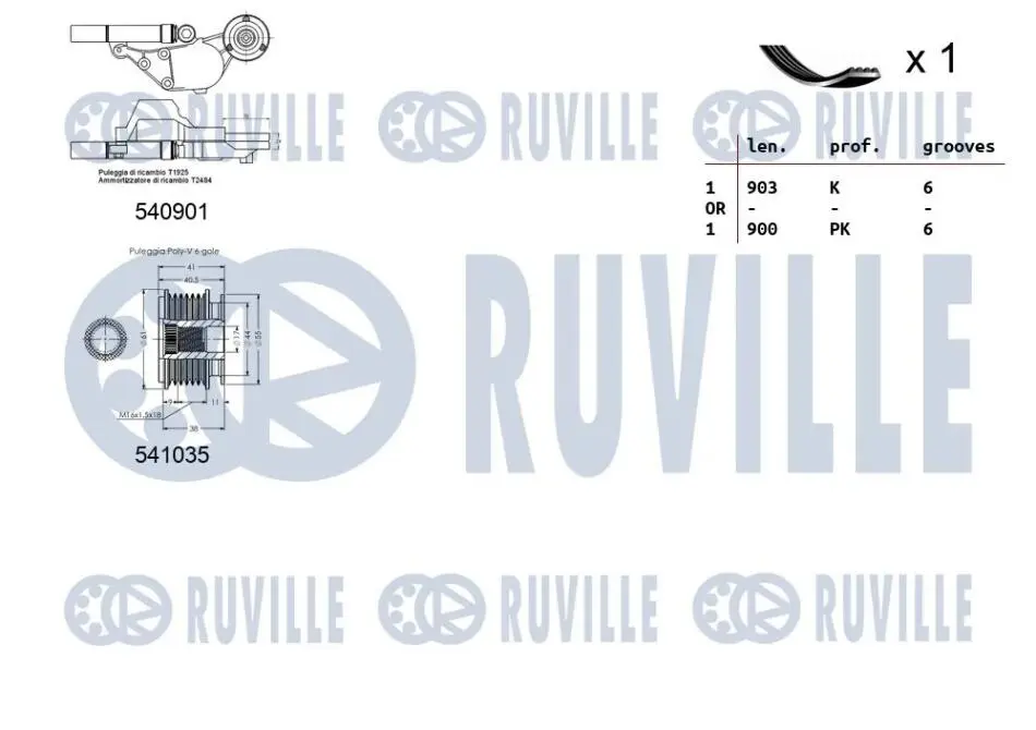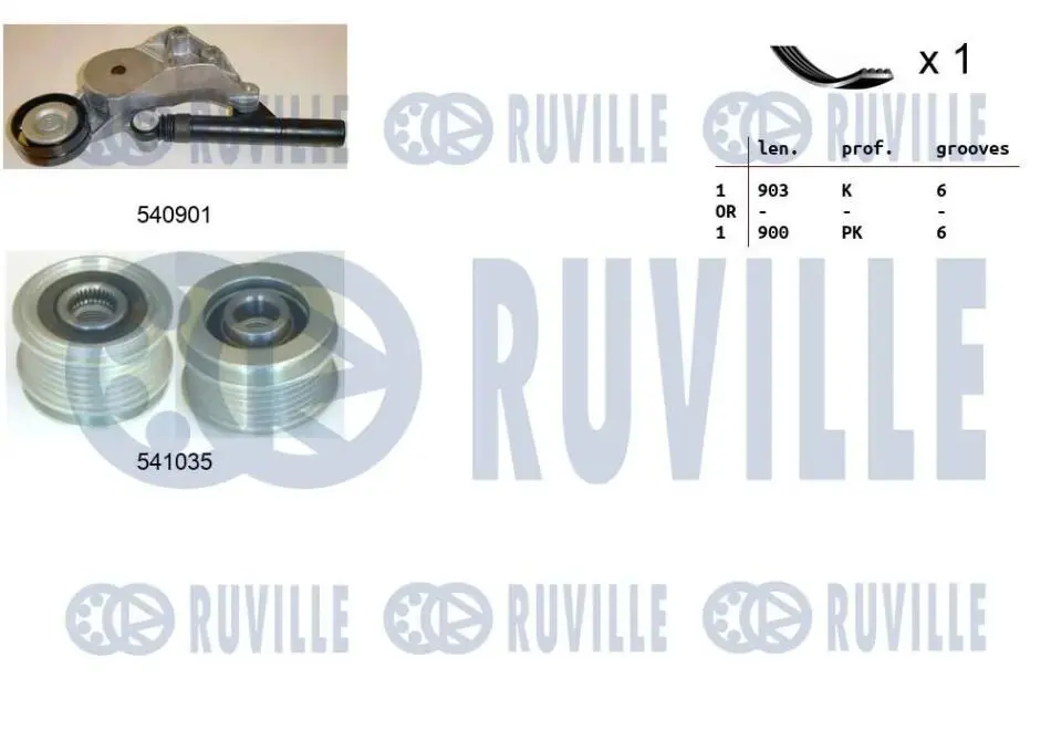 VW К-кт ГРМ (шків генератора+натяжний пристрій+ ремінь) GOLF IV (1J1) 1.9 TDI 97-04, AUDI A3 (8L1) 1.9 TDI 96-01 RUVILLE 570165