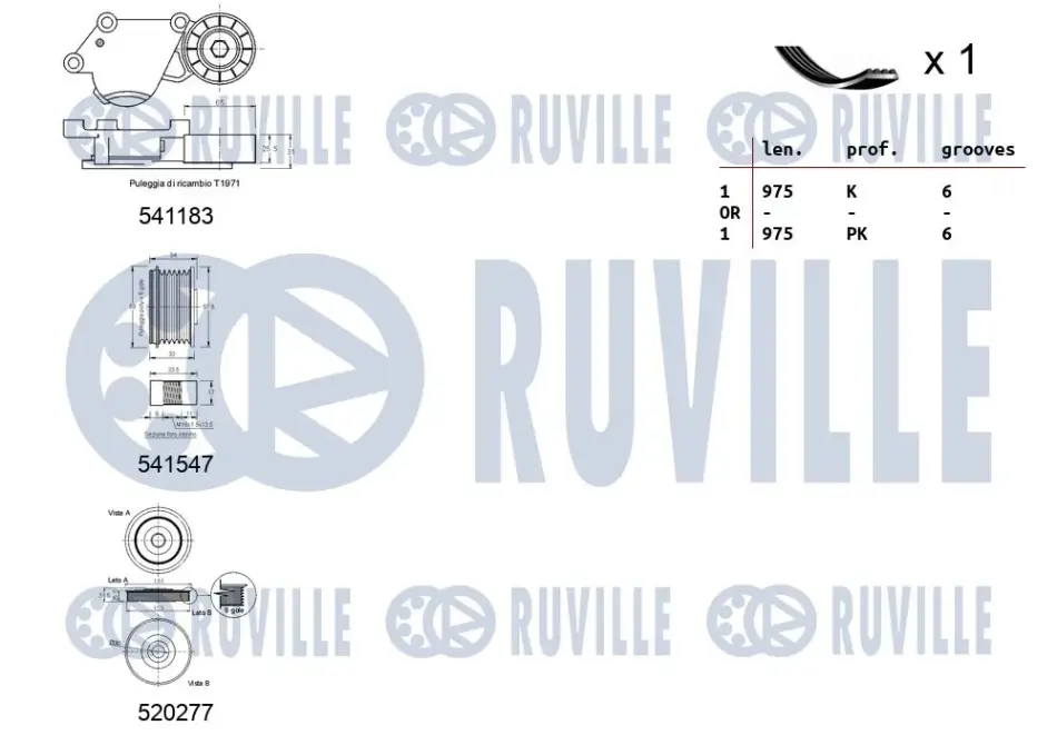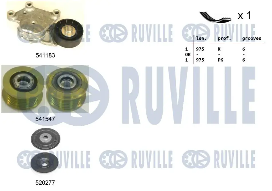 CITROEN К-кт ГРМ (натяжний механізм+ шків генератора+ шків колінчатого валу + ремінь) BERLINGO 1.6 08-, PEUGEOT 308 SW I 1.6 07-14 RUVILLE 570167
