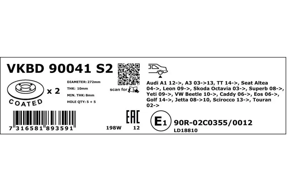 Проверочное значение: ECE R90 APPROVED