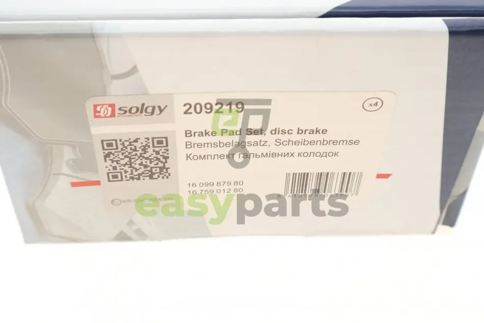 Колодки гальмівні (передні) Citroen C4 04-11/Peugeot 207/308 07-14/208 12-/307 03-09/3008 09-16 Solgy 209219