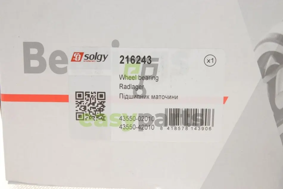 Підшипник маточини (передньої) Toyota Auris 09-/Avensis 08-/Corolla 06-/Rav4 05- Solgy 216243