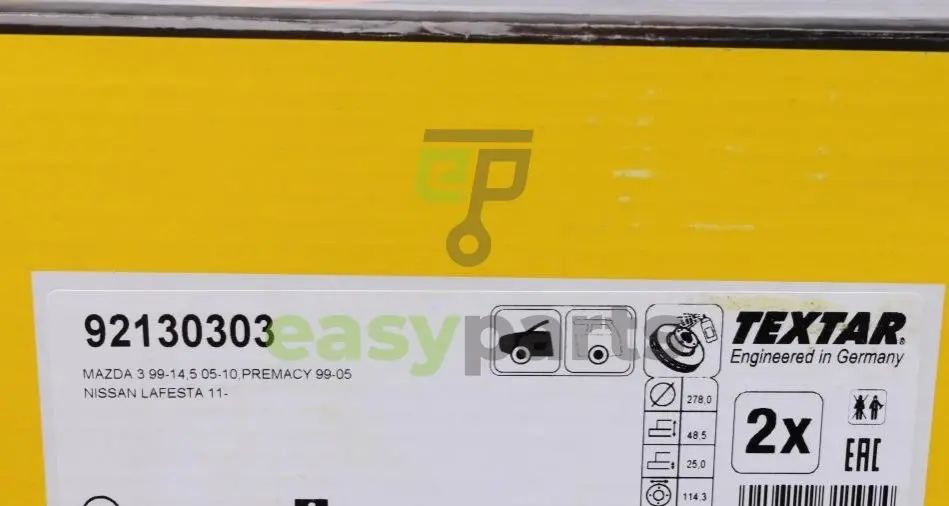 - 92130303 TEXTAR (Текстар) подходит к таким маркам/моделям авто: