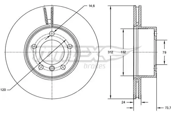 Диск тормозной (передний) BMW 1(F20/F21) 11-/3 (E90/E91/E92) 07-11 (312x23.9) B37/N13/N47/N55 TOMEX (Томекс) TX7278