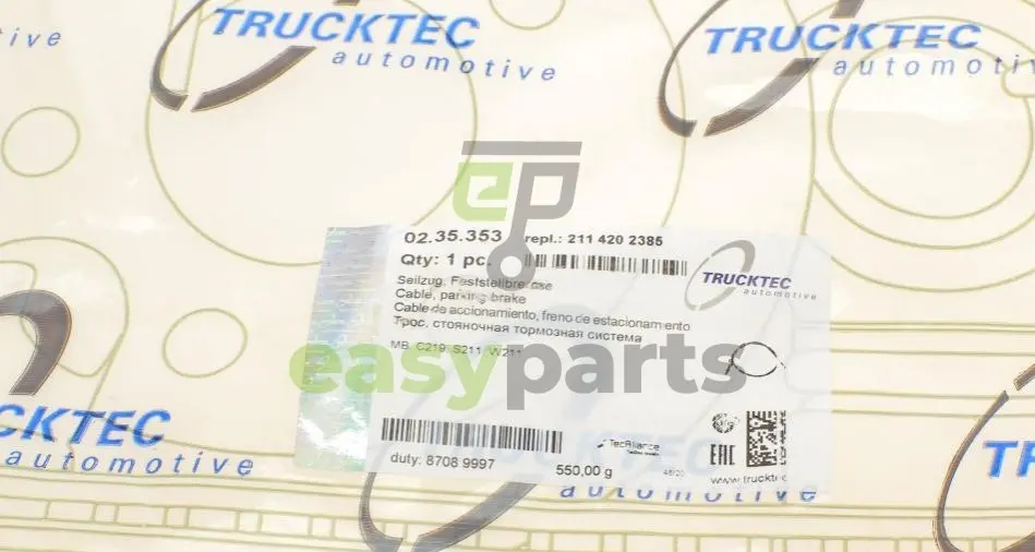 Трос ручника (задній) (L) MB E-class (W211) 02-09 TRUCKTEC 02.35.353