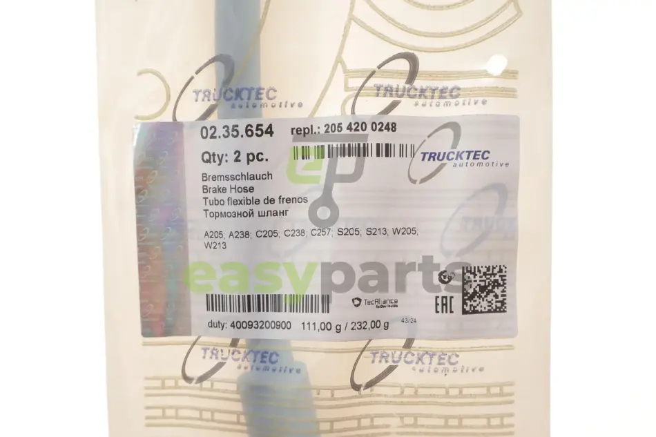 Шланг гальмівний (передній) MB C-class (W205)/E-class (W213) 14- TRUCKTEC 02.35.654