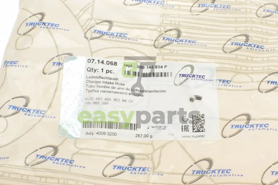 Патрубок інтеркулера (верхній) Audi A6/A4/VW Passat 1.9TDI 00- TRUCKTEC 07.14.068