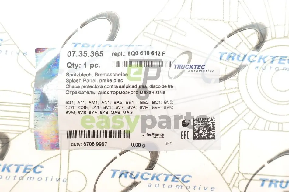 - 07.35.365 TRUCKTEC подходит к таким маркам/моделям авто: