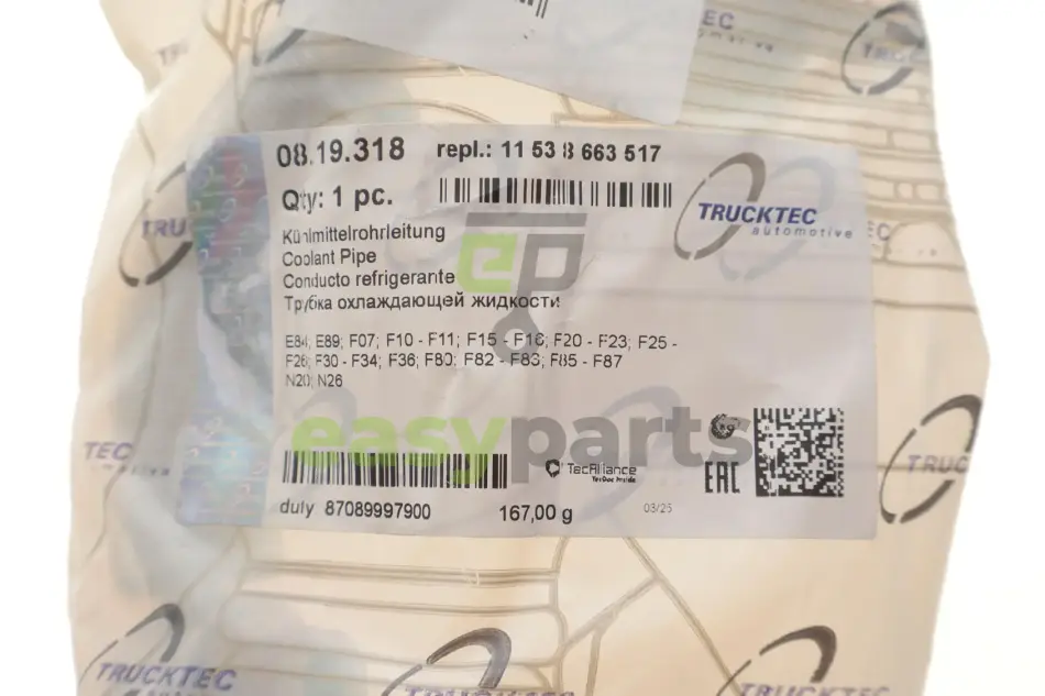 Трубка системи охолодження турбіни BMW 5 (F10/F07/F11) 1.6 i/2.0 i (N20) 10-17 TRUCKTEC 08.19.318