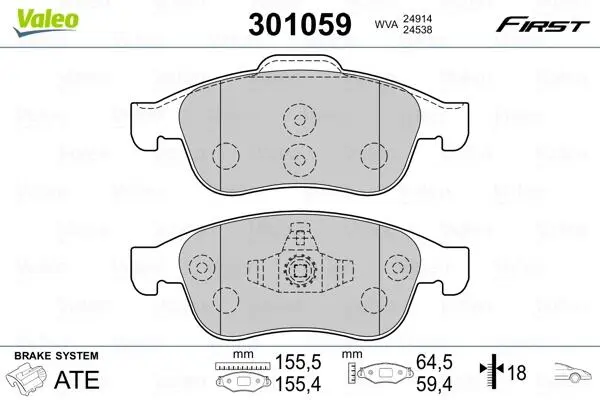 Комплект тормозных колодок Valeo (Валео) 301059