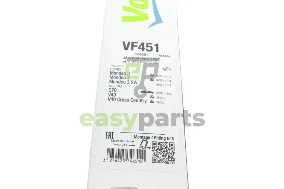 Щітки склоочисника (650/475мм) Ford Mondeo IV/Volvo C70/V40 06- (безкаркасна) Valeo (Валео) 574651
