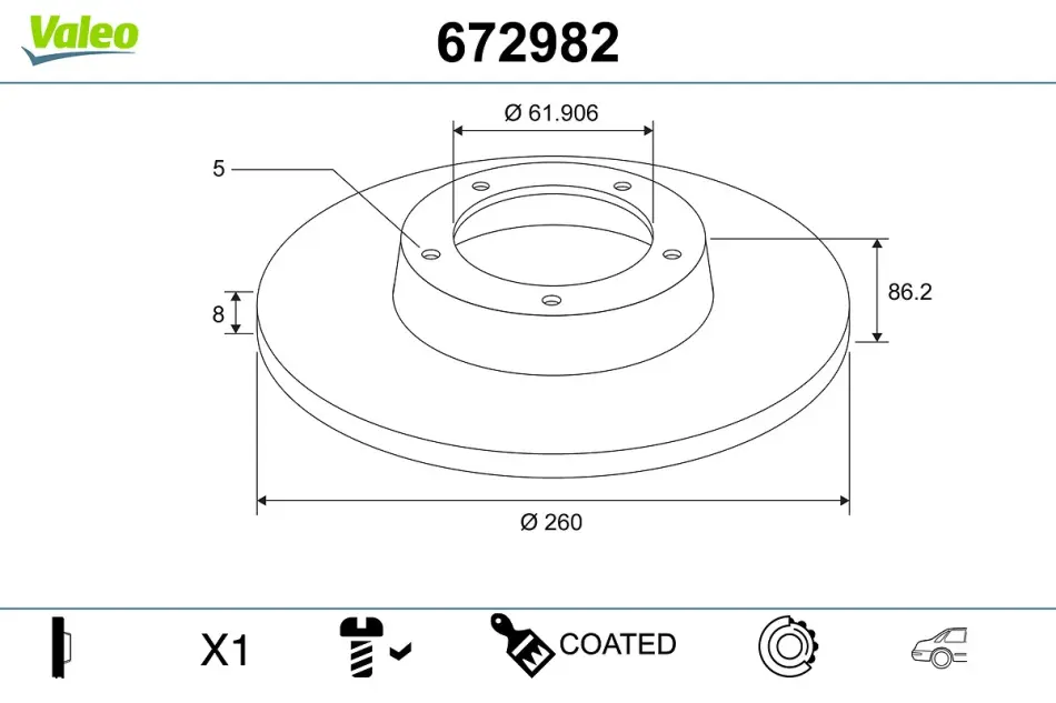 Диск тормозной (задний) Renault Megane IV 15- (260x8) (+ABS) с подшипником Valeo (Валео) 672982