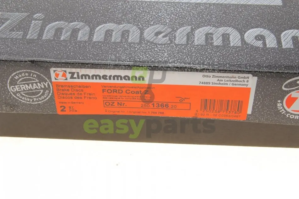 - 250136620 ZIMMERMANN (Зиммерман) подходит к таким маркам/моделям авто: