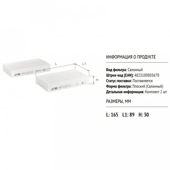 - AF5103 ALPHA FILTER підходить для таких марок/моделей авто:
