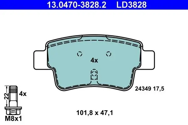 Комплект гальмівних колодок, дискове гальмо ATE 13.0470-3828.2