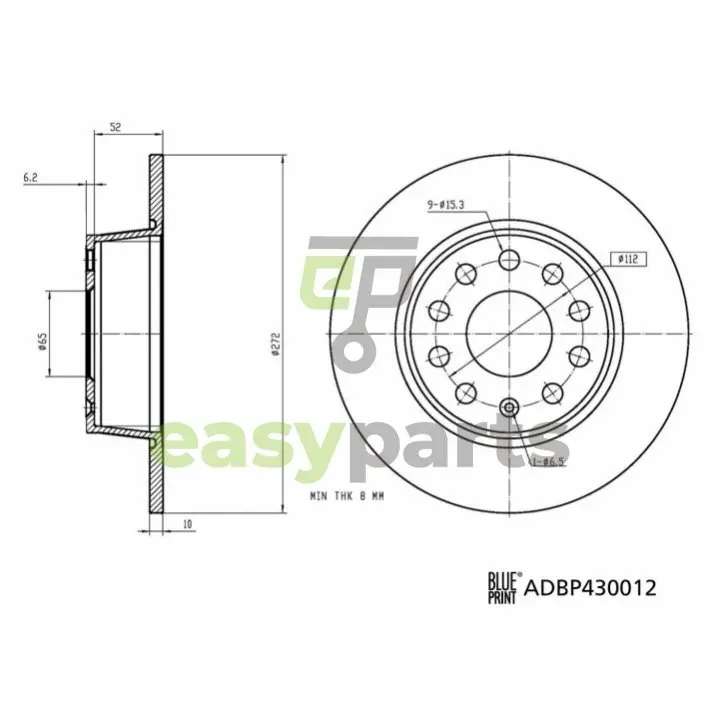 Диск гальм. задн. VW T-ROC BLUE PRINT (Блю Прінт) ADBP430012
