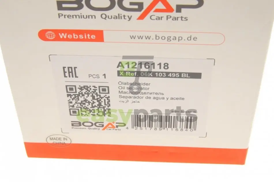 Сепаратор (мастиловіддільник) VW Golf VII/Passat 1.8/2.0 TSI 15- BOGAP A1216118