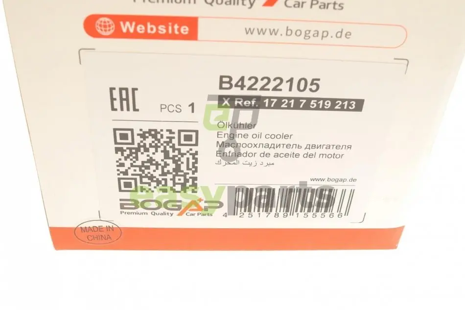 Радіатор масляний BMW 5(E60)/6(E63)/7(E65) 2.2-4.4 01-10 (теплообмінник) BOGAP B4222105