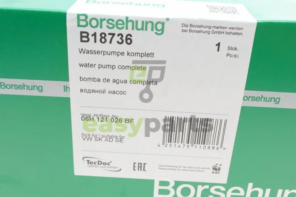 Помпа води Audi A3-A8/Skoda/Seat/VW 1.8-2.0FSI/TFSI 04- (з термостатом) BORSEHUNG B18736