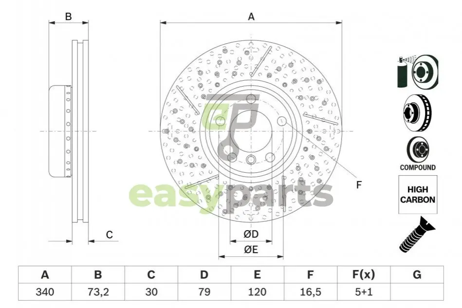 Тип гальмівного диска: зенкерований, двухкомпонентный тормозной диск, вентильований, з прорізом