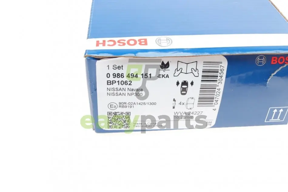 Колодки гальмівні (передні) Nissan NP300 Navara/Pathfinder III 05- BOSCH (Бош) 0 986 494 151