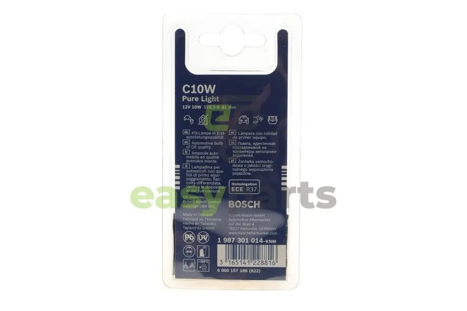 Автолампа C10W 12V 10W SV8.5-8 Pure Light (blister/К-кт 2 шт.) BOSCH (Бош) 1987301014