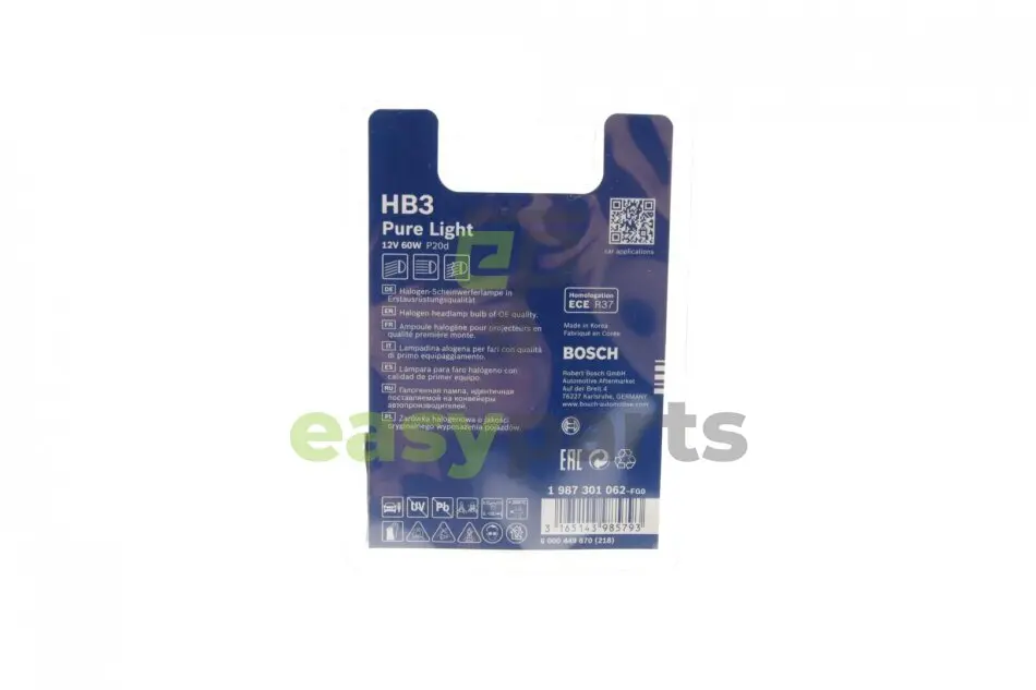 Автолампа HB3 12V 60W P20d Pure Light BOSCH (Бош) 1 987 301 062