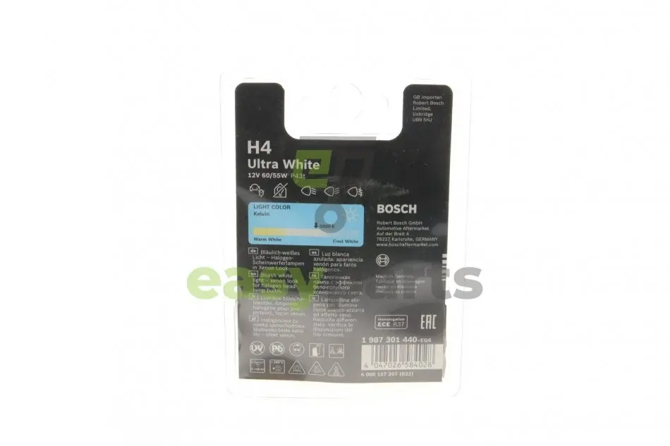 Автолампа H4 12V 60/55W P43t Ultra White BOSCH (Бош) 1987301440