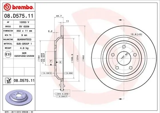 Гальмівний диск BREMBO (Брембо) 08.D575.11