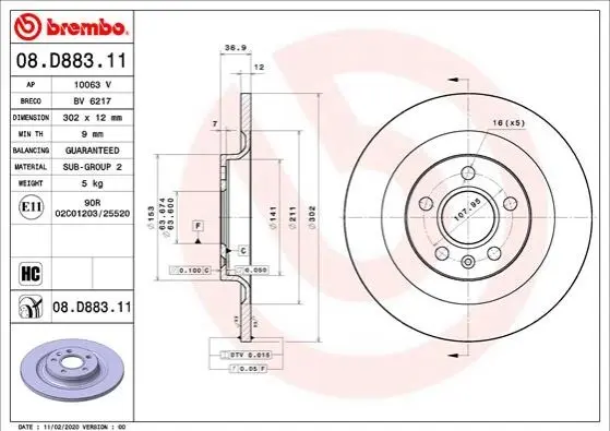 Гальмівний диск BREMBO (Брембо) 08.D883.11
