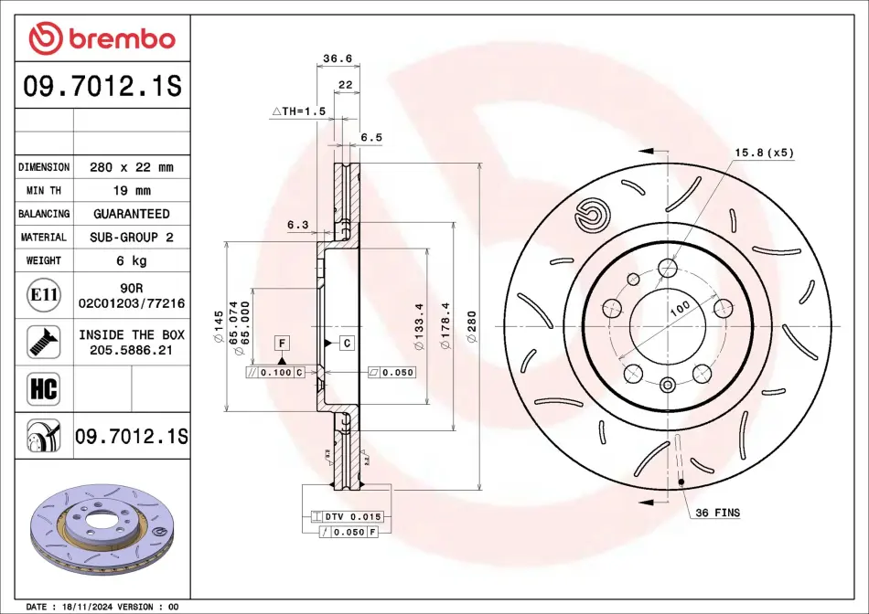 Tarcza ham. XTRA SPORT AUDI A3 (8L1) 09/96-09/06 / SEAT LEON (1M1) 11/99-06/06 / SE BREMBO (Брембо) 0970121S