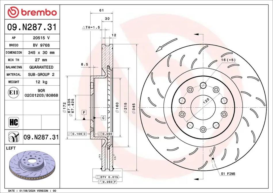 Гальмівний диск lewa CHEVROLET CAMARO 09/15-> / CHEVROLET CAMARO Convertible 09/1 BREMBO (Брембо) 09N28731